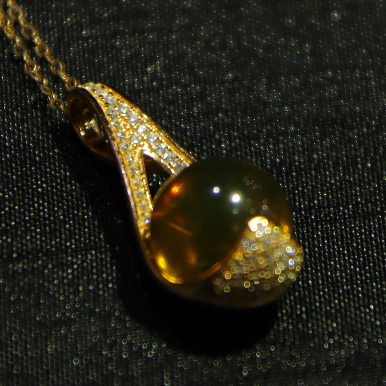 Sterling silver zircon inlaid natural amber Mexican blue amber pendant necklace 11mm round beads